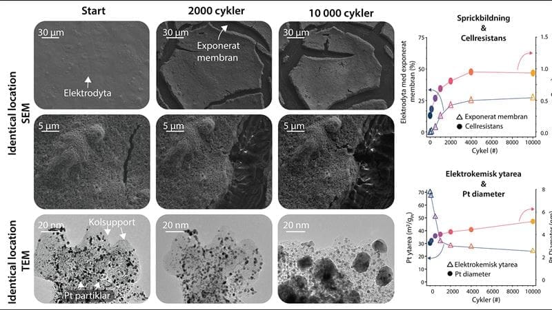 The researchers at Chalmers have been able to explore how the material in the fuel cell degrades at both the nano and micro levels and pinpoint exactly when and where the degradation occurs. This provides valuable information for the development of new and improved fuel cells with a longer lifespan.